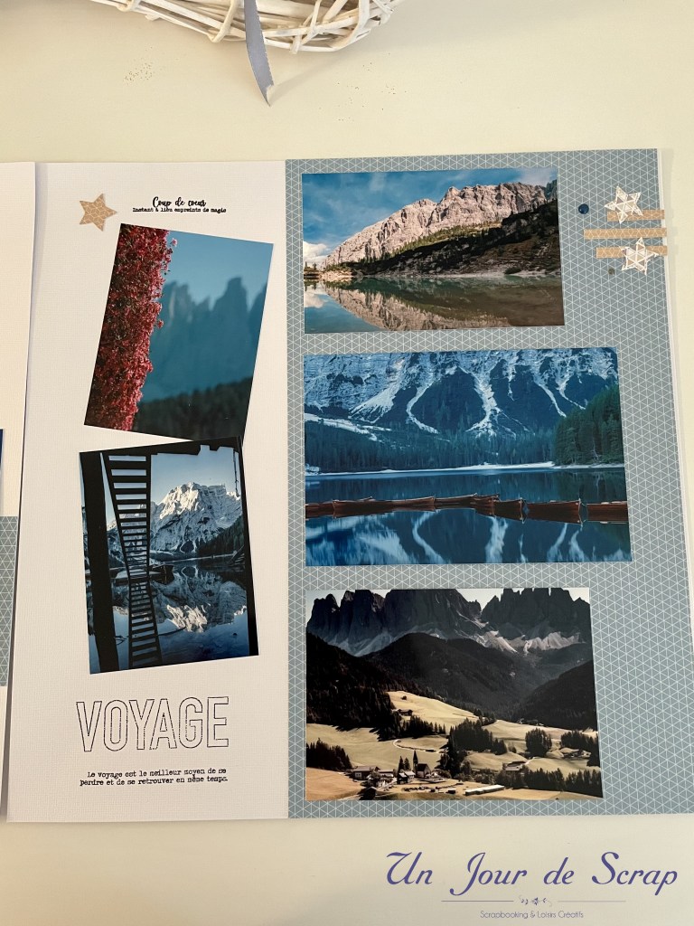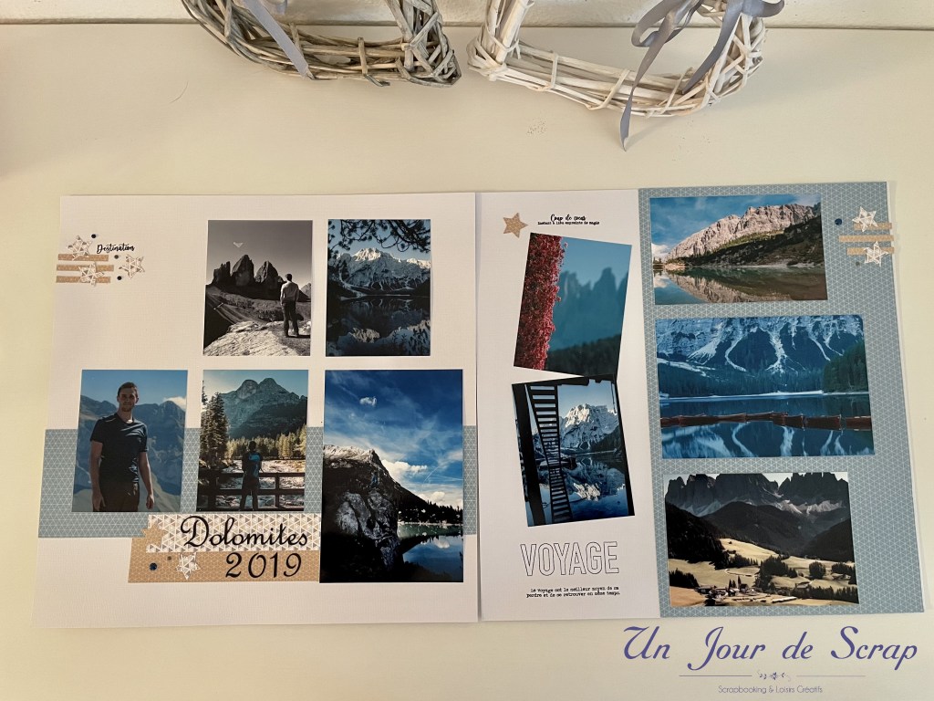 Aujourd’hui j’ai réalisé une double page pour compléter l’album offert à mon frère pour ses 30 ans ( dont vous retrouverez l’article ici). Les papiers viennent de Fée du scrap et les tampons de 4enscrap. Les photos sont magnifiques, on se réjouit que la situation s’améliore et que l’on puisse de nouveau voyager sans soucis…Envie d’évasion!!