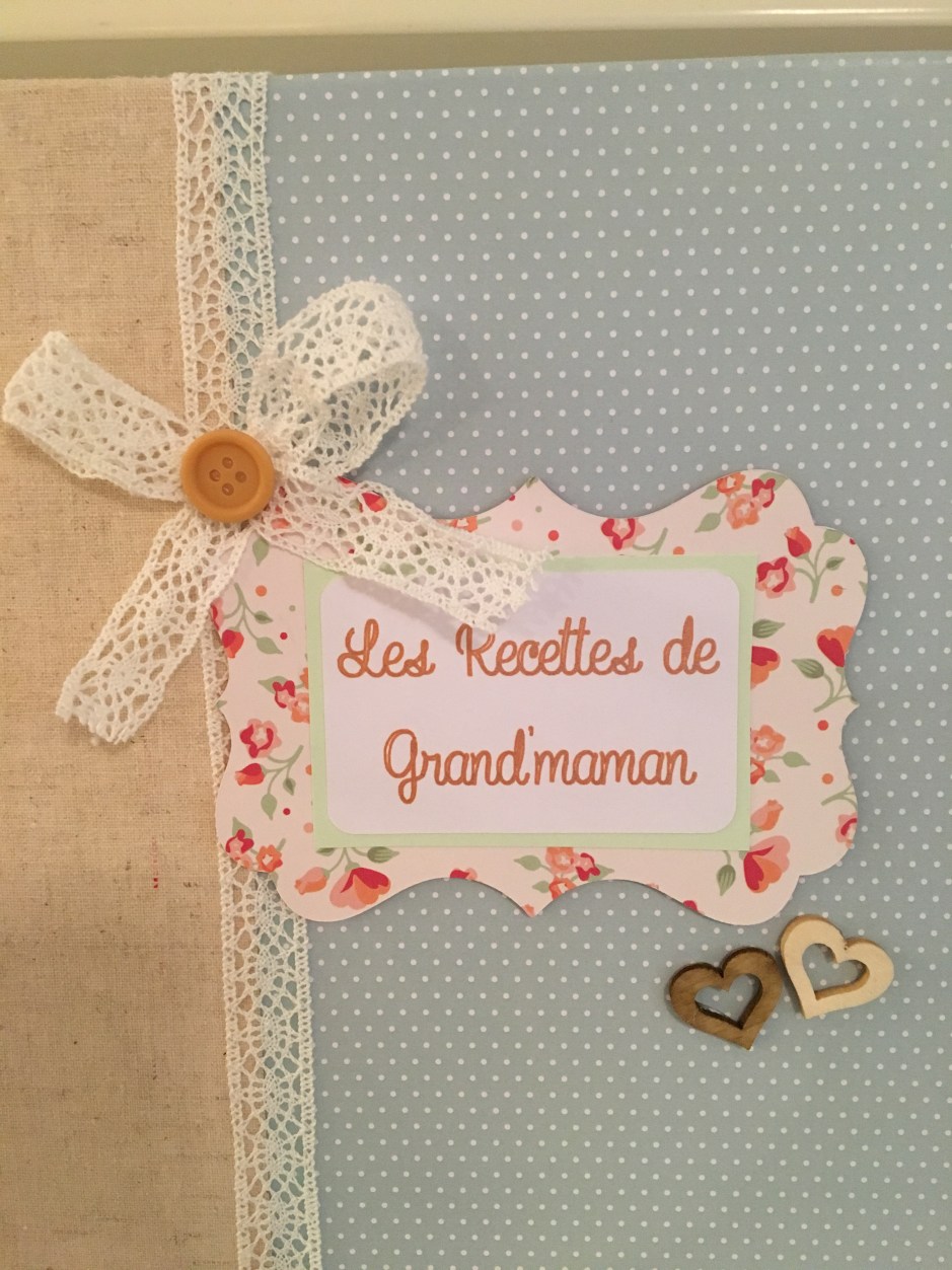 Aujourd hui j ai entièrement réalisé un classeur de recettes pour ma maman. Elle voulait garder précieusement les recettes que sa grand-mère avait écrites dans un cahier complètement usé! J ai réussi à trouver des pochettes pour classeur à la bonne taille des feuilles. Pour personnaliser le tout j ai créé entièrement le classeur à la bonne taille. Je vous montre le résultat en photo: