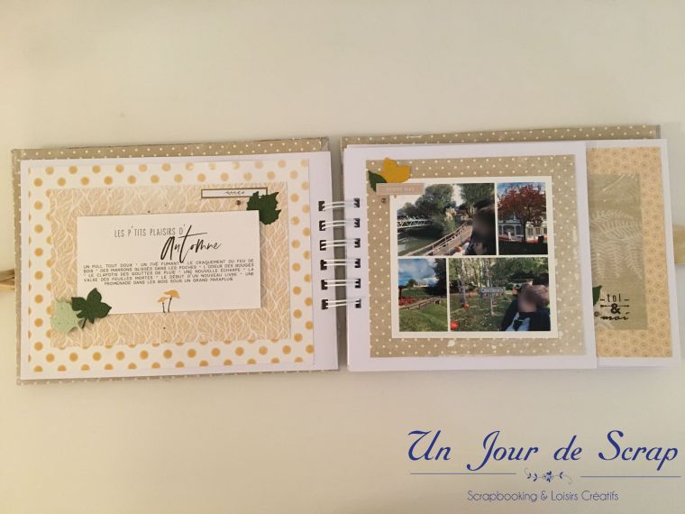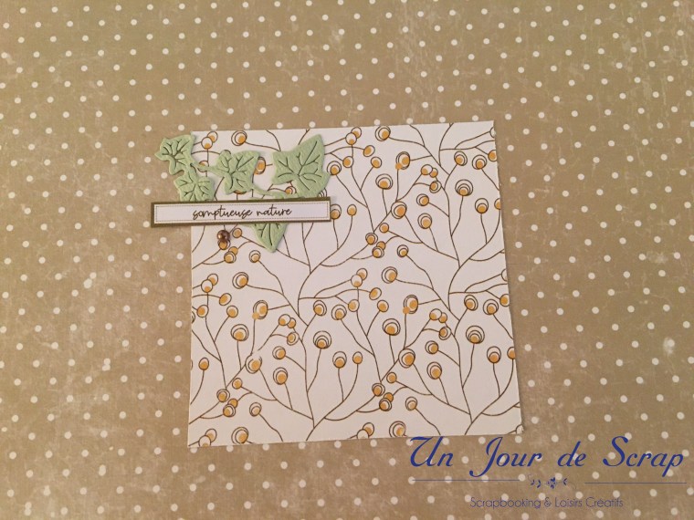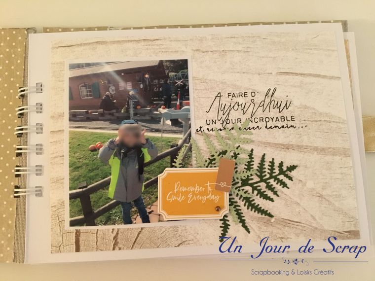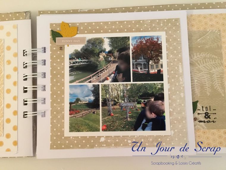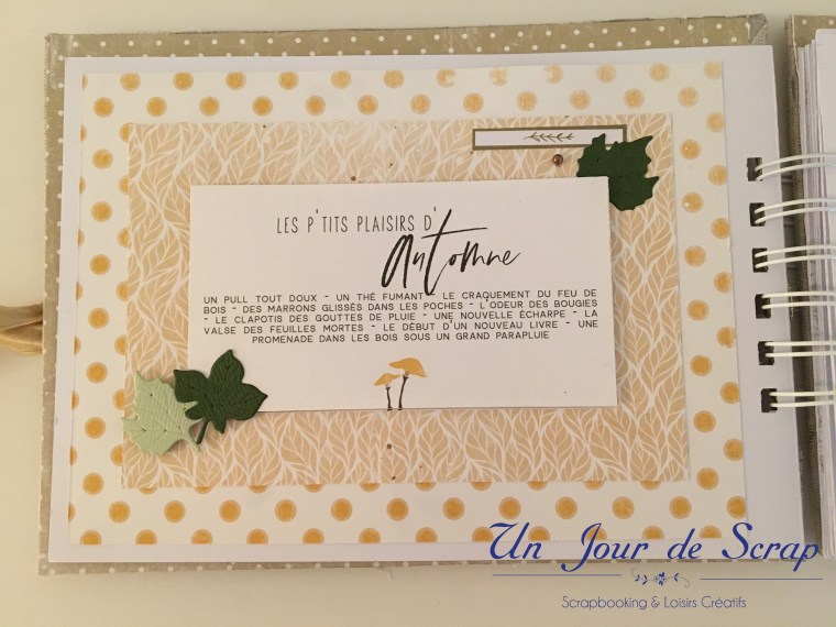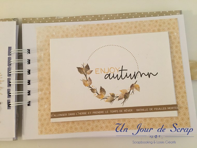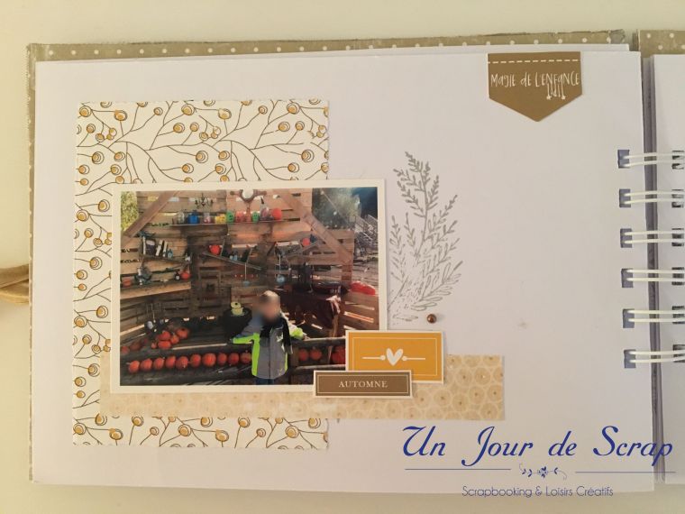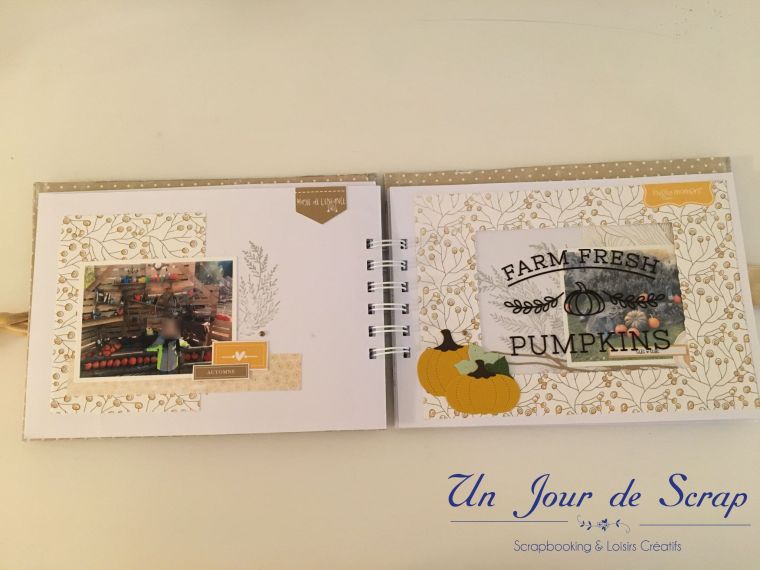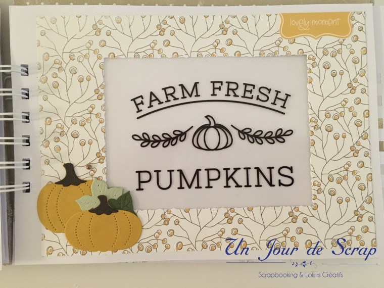 Au milieu de l’album la page « farm fresh pumpkins » a été réalisé sur papier transparent, puis imprimer dessus. Je vous ai mis un papier blanc pour que vous puissiez mieux voir la décoration.