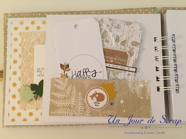 Je vous retrouve aujourd’hui pour vous présenter un album que je viens de finir. Je l’ai réalisé avec la magnifique collection Sous-Bois de Mes P’tits ciseaux. Il y a également des tampons et des dies de Florilèges Design.