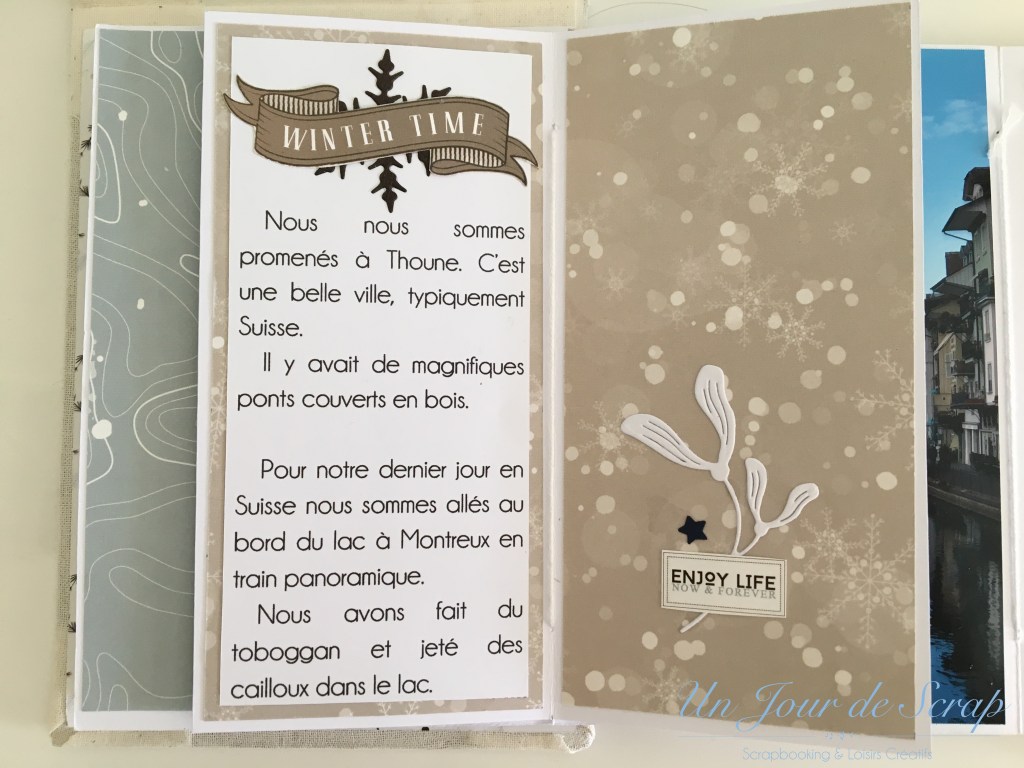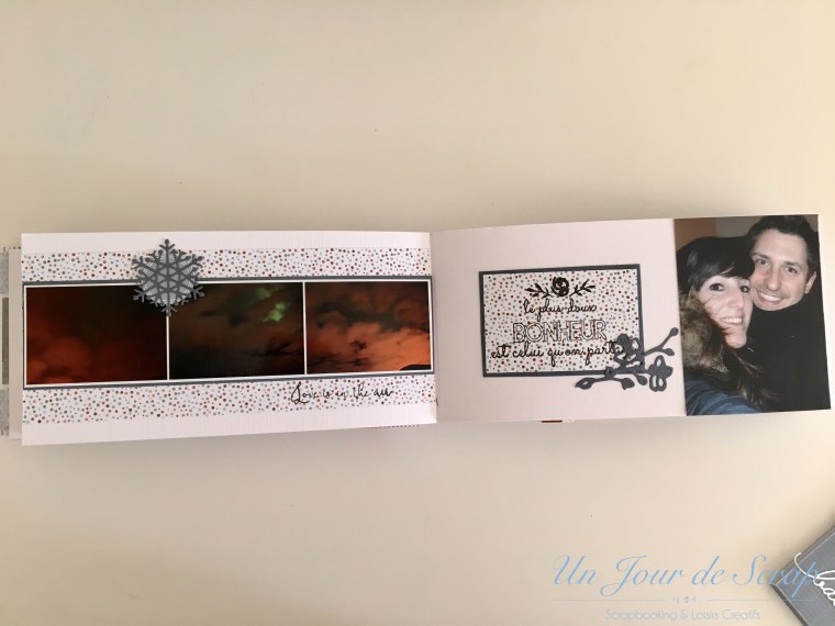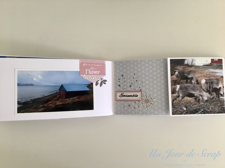 En rangeant (un peu) ma petite partie « scraproom » dans mon salon, j’ai retrouvé ce kit de la Fée du Scrap de Décembre 2019 (dont vous retrouverez le tuto ici) J’adore vraiment cet album, il est très intéressant à créer, il associe du cartonnage et du scrap. Les couleurs sont vraiment top, bref tout m’a plu! J’ai scrappé les photos de notre voyage en Norvège en 2014…(je vous ai dit que j’étais en retard?? :-))